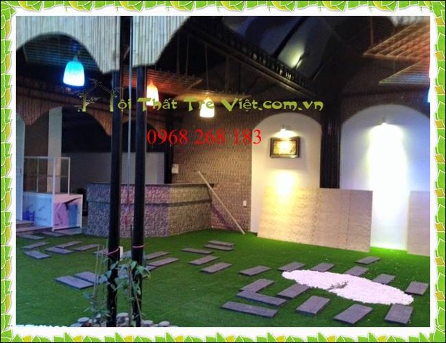 Đội thợ chuyên nghiệp đã ốp tre hoàn toàn cho khu ngoài trời cũng như nội thất trong nhà hàng